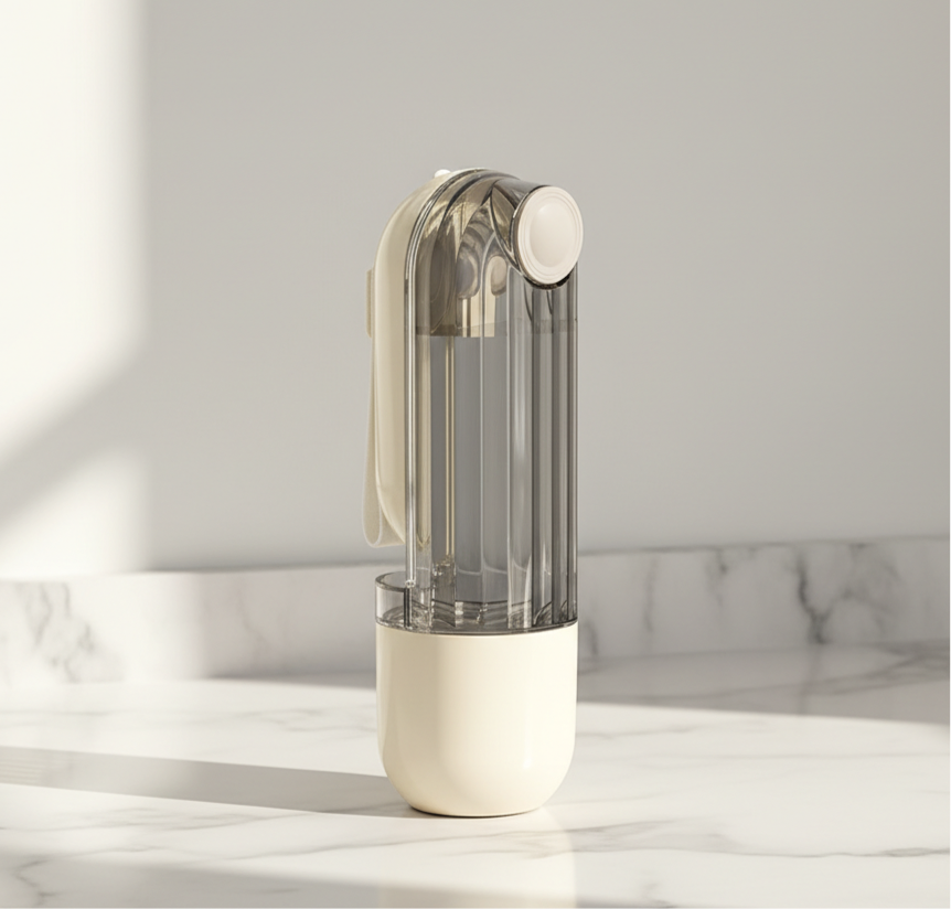 Convenient Water Dispensing: Curved wide-mouth cup with one-button water outlet and lock, allowing one-handed hydration.